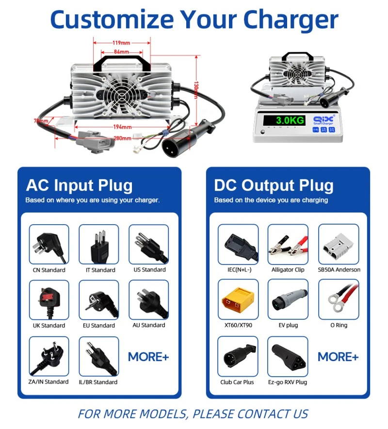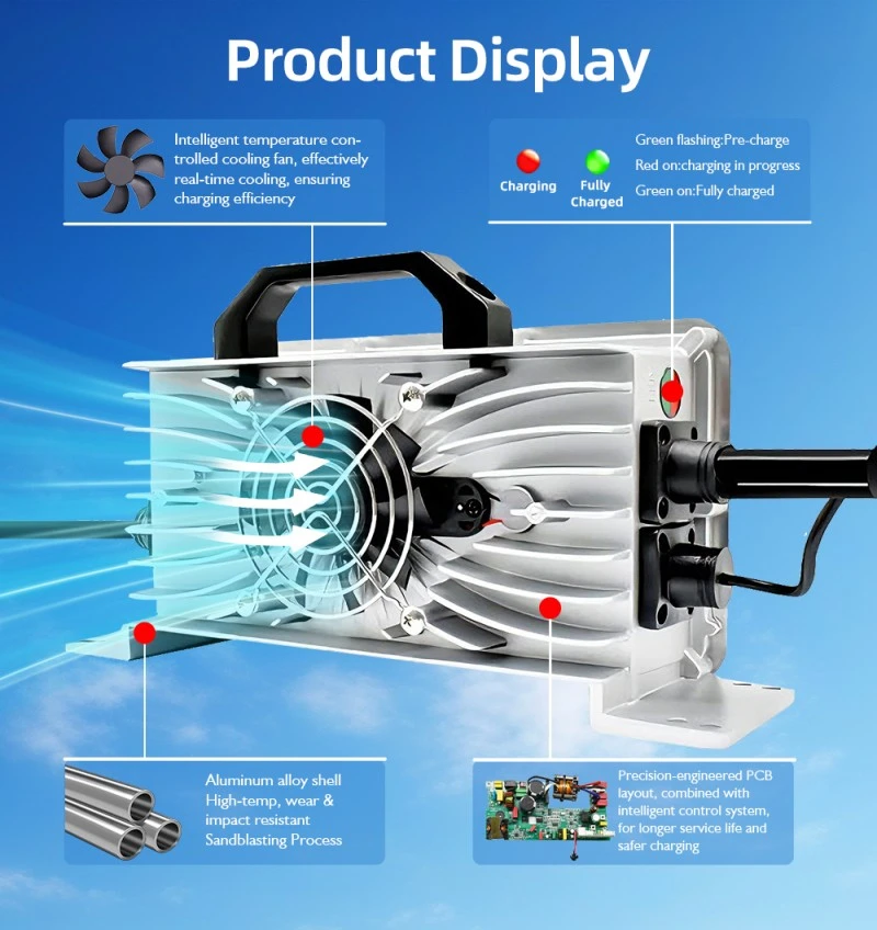 Velegnet til elektriske køretøjer, gaffeltrucks, golfvogne og marinesystemer, denne STARWELL indbyggede oplader kombinerer alsidighed, hastighed og sikkerhed - din pålidelige strømløsning til batteribehov på farten.