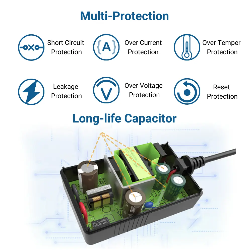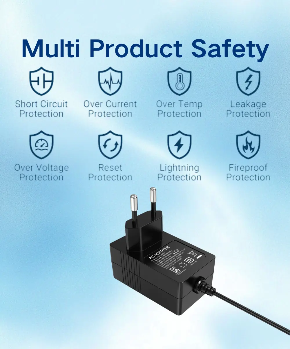 Dens kompakte plug-in-design sparer plads. Med en stabil og ensartet 12W output-strømadapter er den perfekt egnet til routere, netværksswitches, LED-strips og forskellige andre enheder.