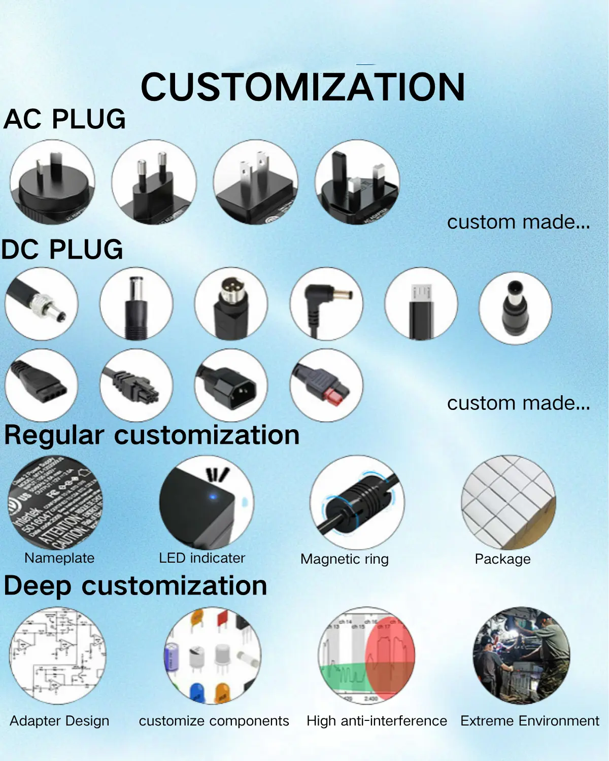 Vi er en AC/DC-strømforsyningsfabrik, der kan tilpasse enhver strømadapter og bestå relevante certificeringer.