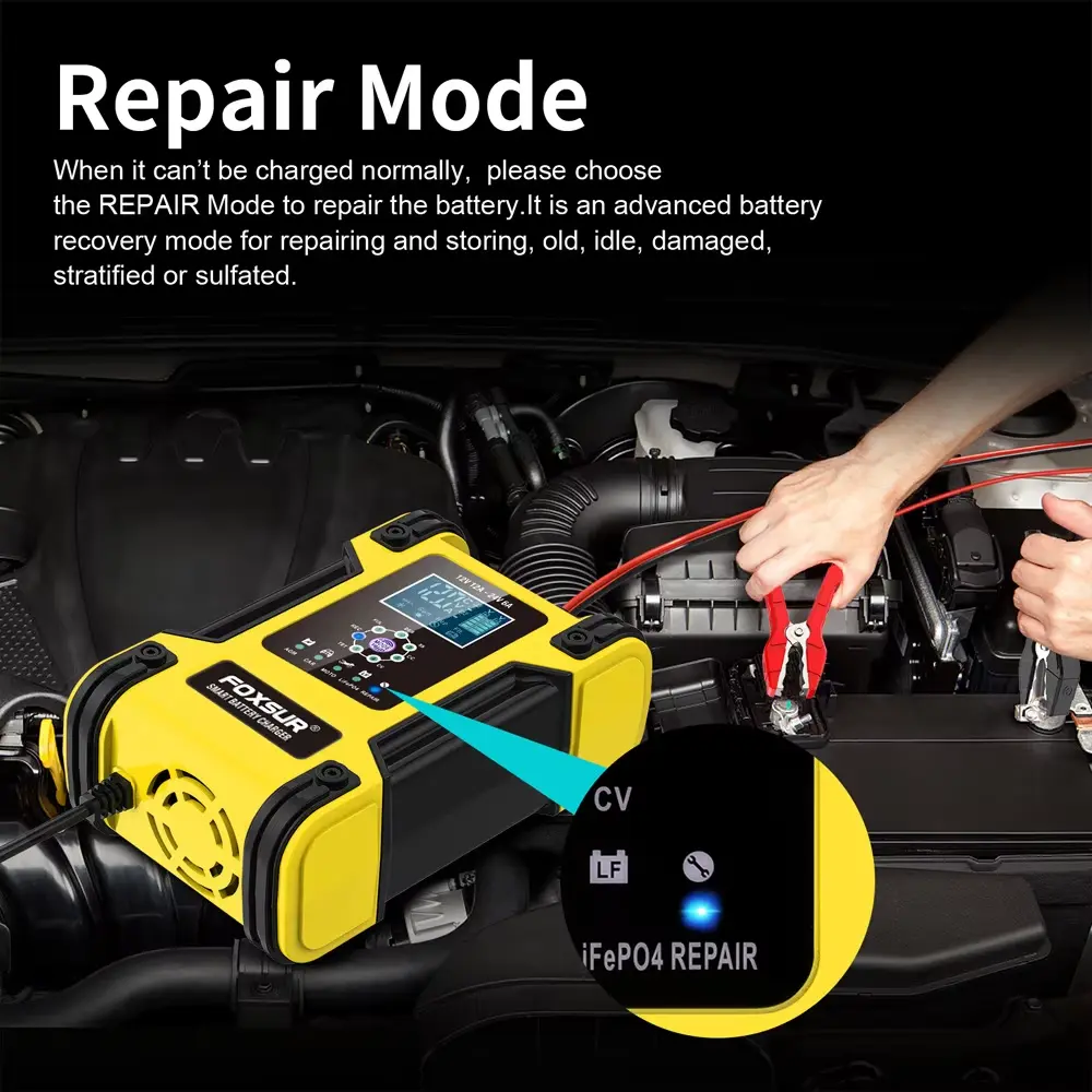 Intelligent reparationsfunktion: Indbygget pulsafsulfateringstilstand hjælper med at genoprette sulfaterede batterier og genoprette tabt kapacitet.