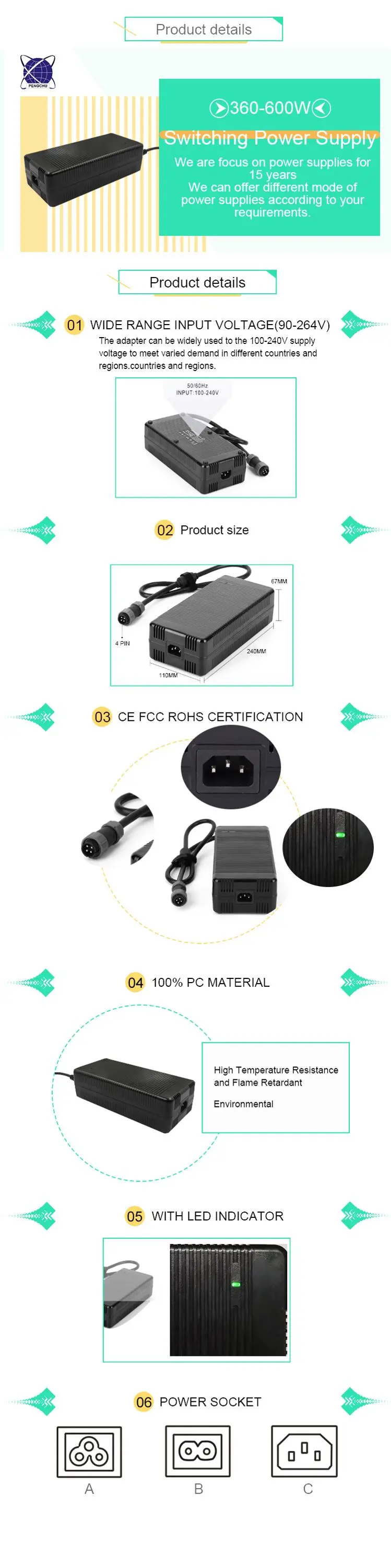 Når din enhed kræver en kraftfuld, stabil og pålidelig højeffekt DC-strømforsyning, er 12V 50A 600W Switching Power Supply Adapter den ultimative løsning, du har ledt efter. Denne 12V 50A skiftende strømadapter kombinerer høj ydeevne med høj tilpasningsevne og kan nemt drive forskellige højenergiforbrugende professionelle enheder.