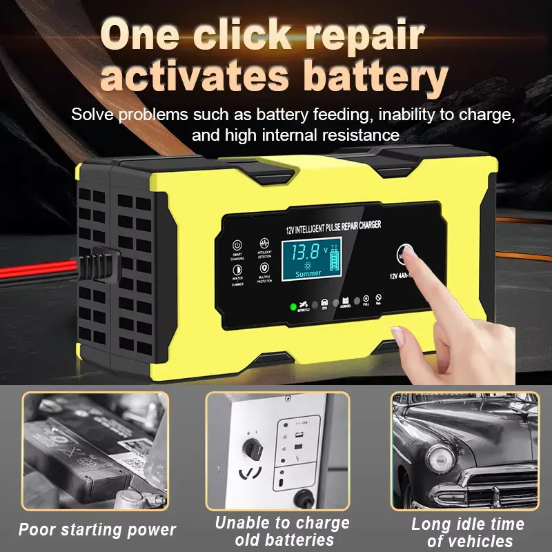 Som en førende professionel producent i Kina introducerer Starwell en 12V 6A fuld intelligent automatisk reparationsmotorcykelbatterioplader designet specifikt til 12V blysyre-, AGM-, Gel- og LiFePO4-batterier. Ved hjælp af mikroprocessorstyret, tre-trins smart opladningsteknologi har denne enhed en pulsreparationsfunktion, der effektivt kan nedbryde blysulfatkrystaller for at genoprette kapaciteten af aldrende batterier. Når den er fuldt opladet, skifter enheden automatisk til en lavspændings-float-charge vedligeholdelsestilstand for at forhindre overopladning. Produktet gennemgår 100 % indbrændingstest og overholder CE-, RoHS- og FCC-certificeringer, hvilket gør det velegnet til brug med motorcykler, ATV'er, snescootere og andre små 12V batterisystemer. Vælg Starwell for en sikker, intelligent og fuldautomatisk batteriopladnings- og reparationsløsning.