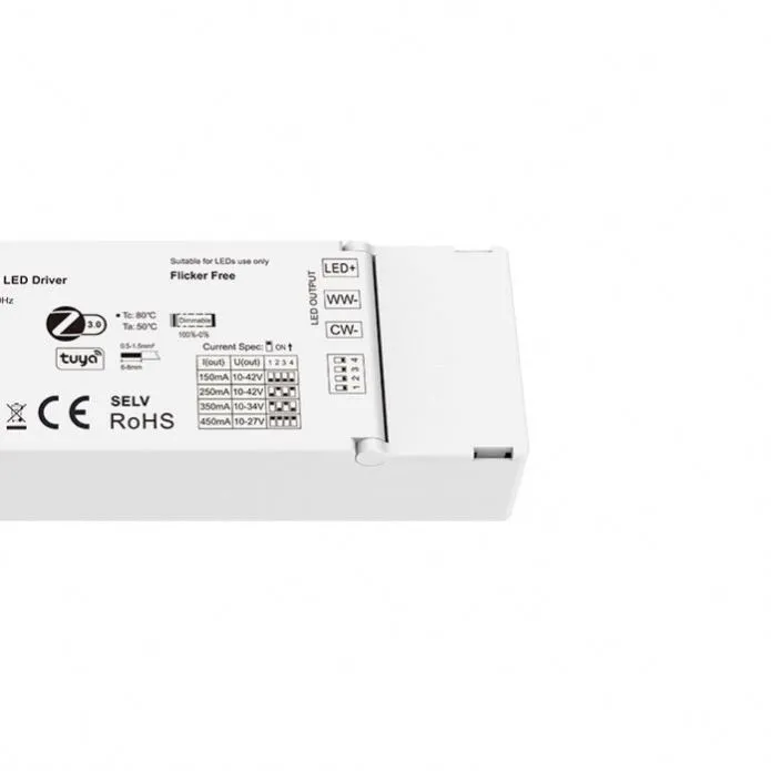 STARWELL fabrikkens CE-certificerede 12W TUYA Zigbee CCT dæmpbare LED-drivere er en højeffektiv smart lysstrømløsning designet til moderne bolig- og kommercielle belysningssystemer. Den understøtter en bred indgangsspænding på 100~240VAC 50/60Hz, hvilket muliggør stabil global anvendelse. Med en nominel udgangseffekt på maks.12W realiserer denne driver en jævn CCT-dæmpningskontrol baseret på den trådløse TUYA Zigbee-protokol, som giver brugerne mulighed for at justere både lysstyrke og farvetemperatur eksternt via APP, stemmeassistenter og smarte scener.