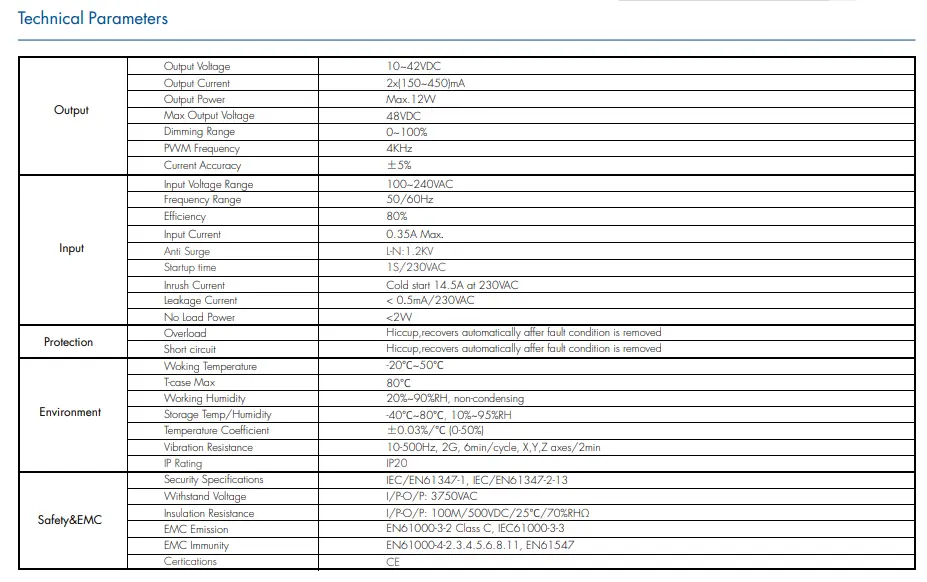 12W TUYA Zigbee CCT dæmpbare LED-drivere har høj konverteringseffektivitet på op til 85%, effektfaktor ≥0,90 og lavt strømforbrug uden belastning, hvilket effektivt reducerer energispild. Indbygget fuld beskyttelse inklusive overspænding, overstrøm, kortslutning og overtemperatur sikrer sikker og stabil drift. Ved at vedtage et kompakt og brandsikkert kabinet bruges det meget i smarte hjem, hoteller, kontorer og detailjusterbare hvide belysningssystemer, hvilket giver pålidelig og brugervenlig intelligent dæmpningsydelse.