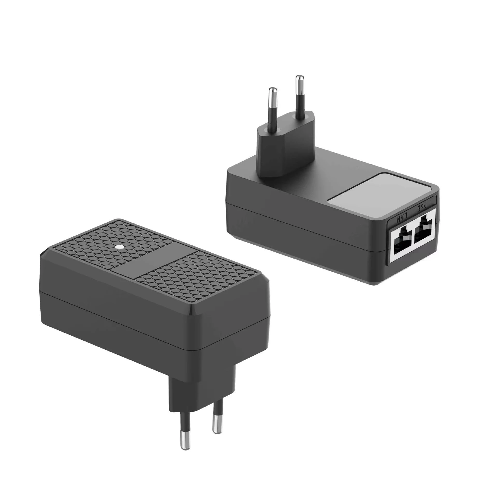 Den 12W vægmonterede udskiftelige PoE-injektor er en integreret netværksstrømenhed, der kombinerer en strømadapter og passiv PoE-injektor i en enkelt kompakt enhed. I modsætning til traditionelle PoE-opsætninger, der kræver både en strømadapter og et injektormodul, forenkler dette design installationen ved at tillade, at enheden kan monteres direkte på en stikkontakt.