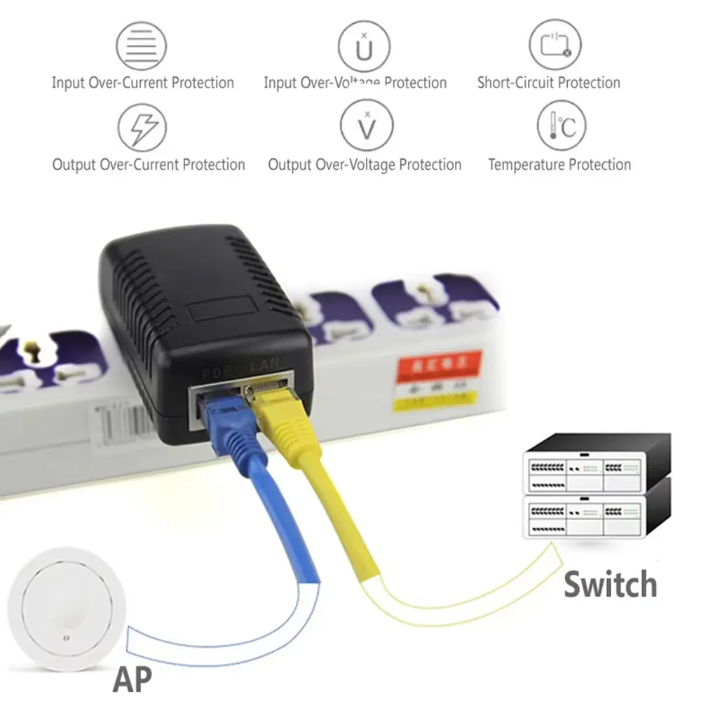 Udstyret med et 10/100/1000 Mbps RJ45-interface sikrer injektoren højhastighedsdatatransmission og understøtter 2,5G Ethernet-kompatibilitet, der opfylder kravene fra moderne HD-overvågningssystemer og trådløse netværk.