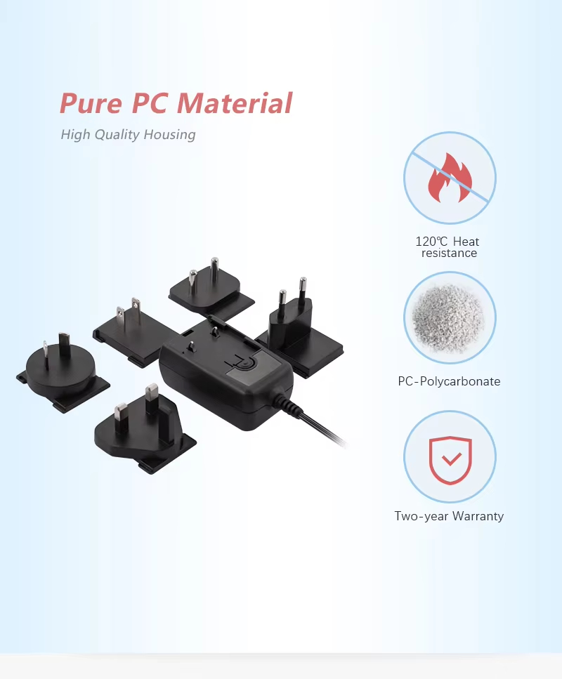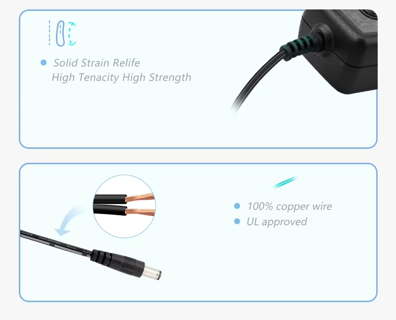Effektiv og stabil strømforsyning: Som en højtydende 24W strømadapter anvender den avanceret Switching udskifteligt stik strømforsyningsteknologi for at opnå effektiv konvertering. Den kan stabilt konvertere vekselstrøm til jævnstrøm (AC til DC udskiftelig strømadapter), hvilket giver kontinuerlig og ren energi til dine enheder.
