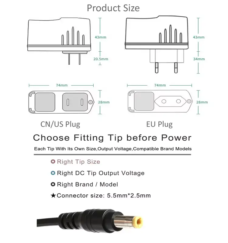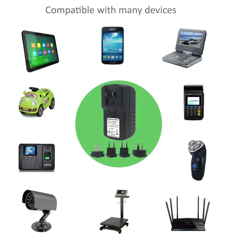 Højkvalitets 24W strømforsyningsadapter tilbydes af den kinesiske producent Starwell, vores denne adapter har forskellige stik, såsom US, UK, EU og AU stik.