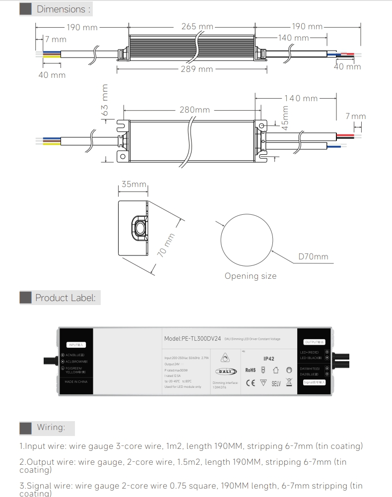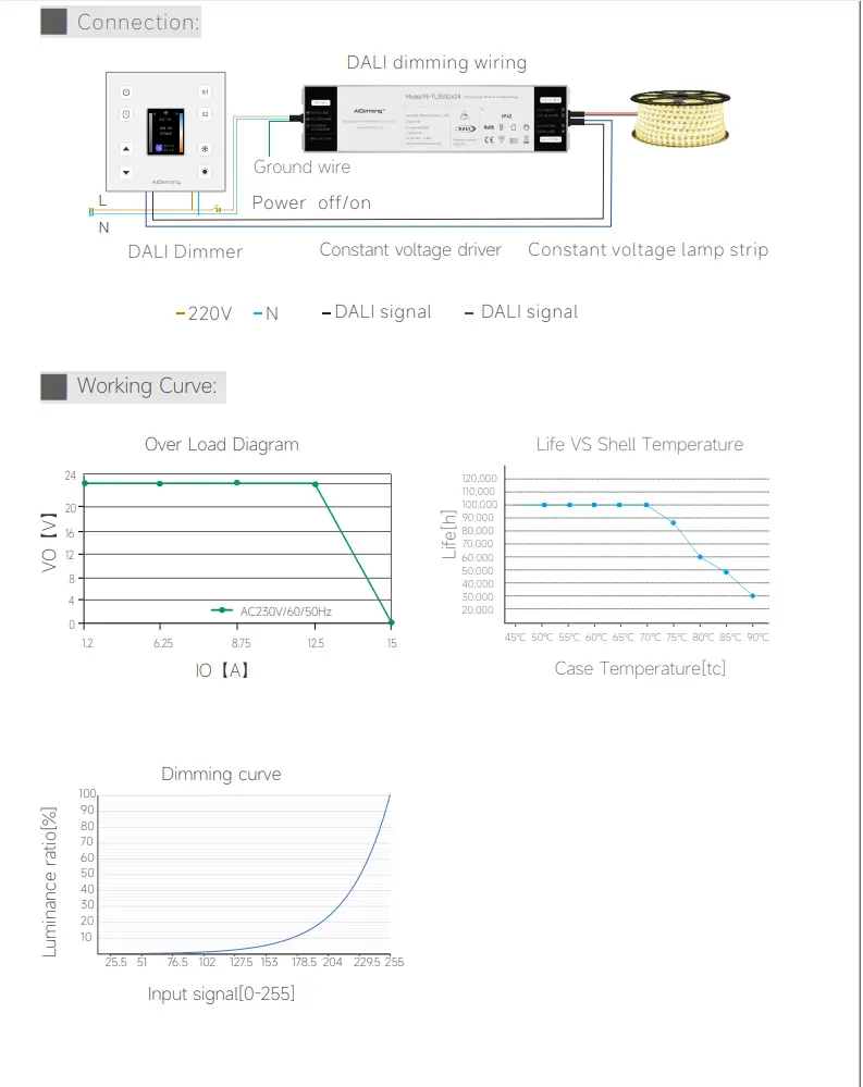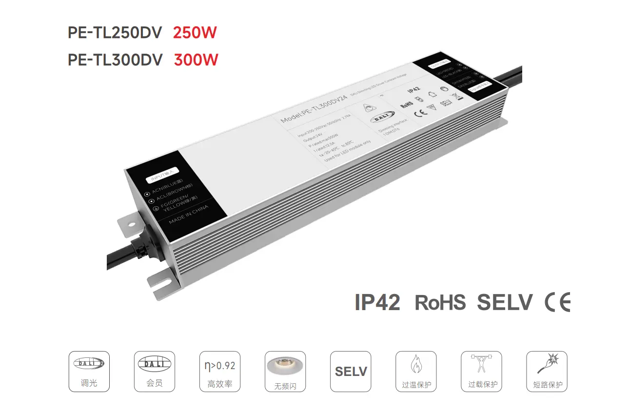 Med en kompakt IP20-kapsling er den nem at installere i loftsrum, styreskabe eller belysningsarmaturer. Dets konstante spændingsdesign sikrer ensartet ydeevne for parallelforbundne LED-strips, paneler og moduler, hvilket gør den ideel til butikslokaler, kontorer, hoteller og udendørs arkitektoniske belysningsprojekter.