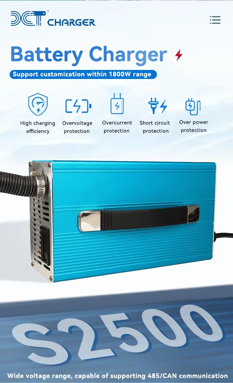 Med en robust, kompakt struktur og god varmeafledning er den velegnet til elektriske køretøjer, industrielle rengøringsmaskiner, energilagringssystemer, AGV'er og marineudstyr. Den overholder internationale sikkerhedscertificeringer og understøtter tilpassede stik og mærkning. Ved at kombinere høj effektivitet, stabilitet og holdbarhed er denne oplader et ideelt valg til mellem til stor kapacitet 24V batterisystemer.