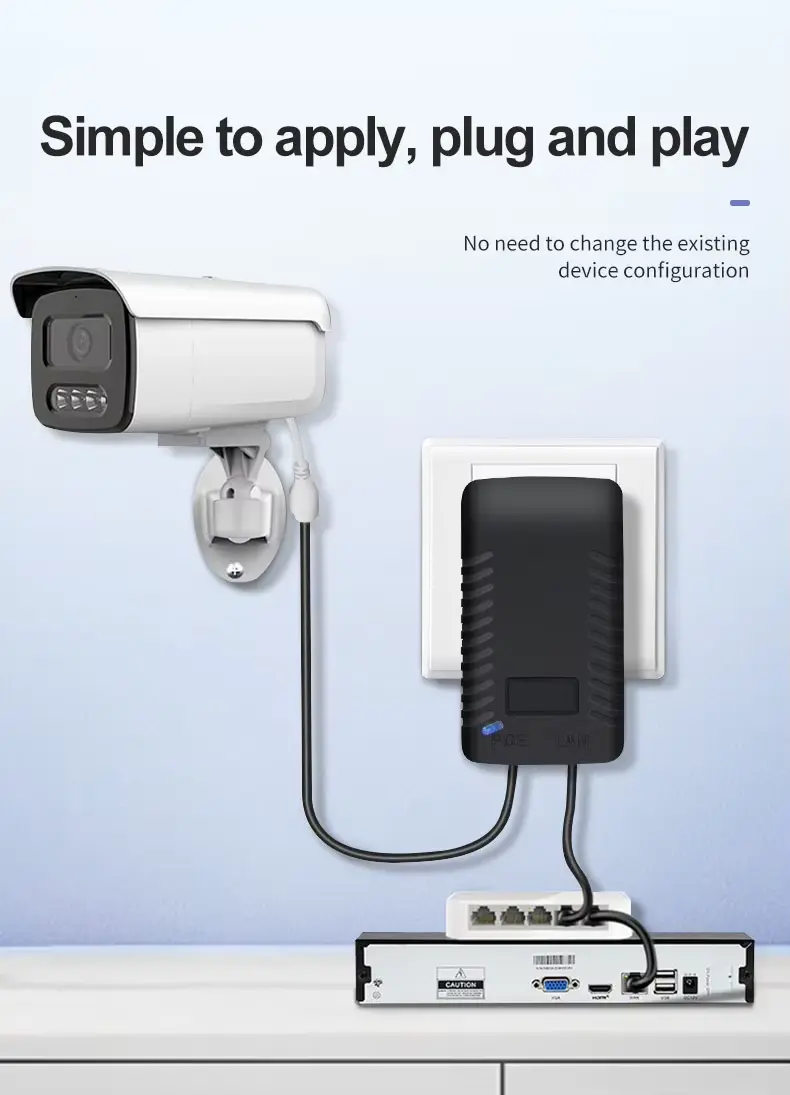 IP-kameraer med lang rækkevidde: Perfekte til at forsyne 48V PTZ (Pan-Tilt-Zoom) eller bullet-kameraer installeret på fjerntliggende steder.