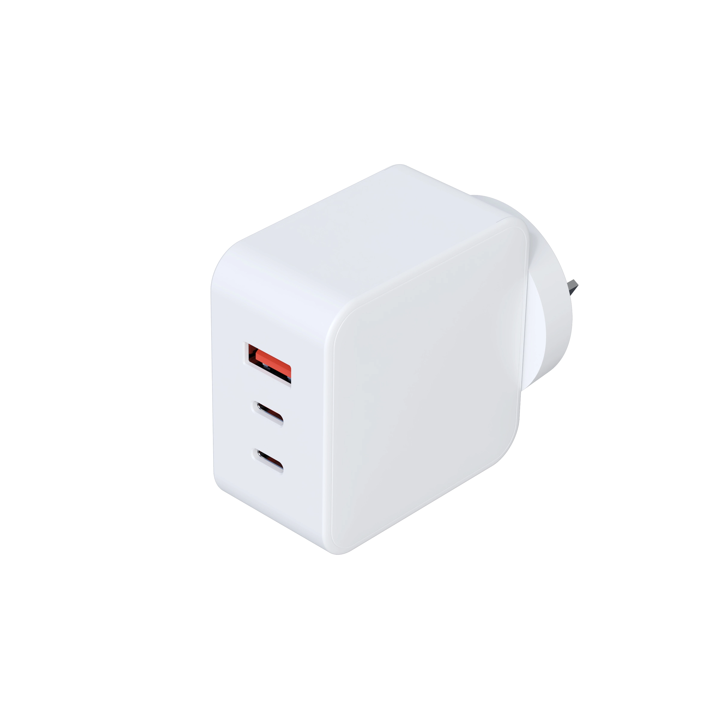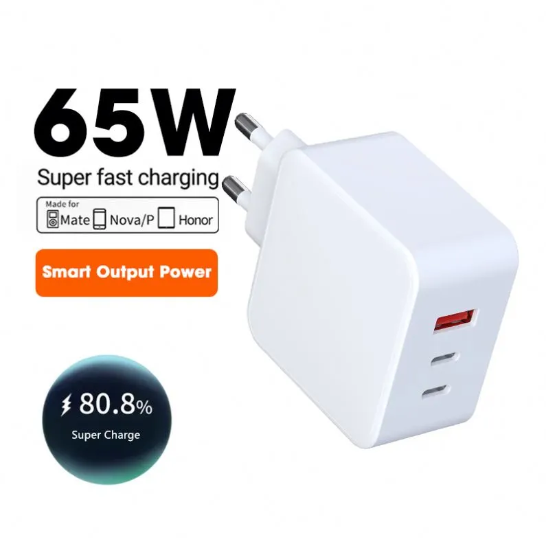 65W PD 3.0 Ultratynd 3 Port UK GaN-oplader Hurtigoplader OTP til bærbar 2A-udgang |