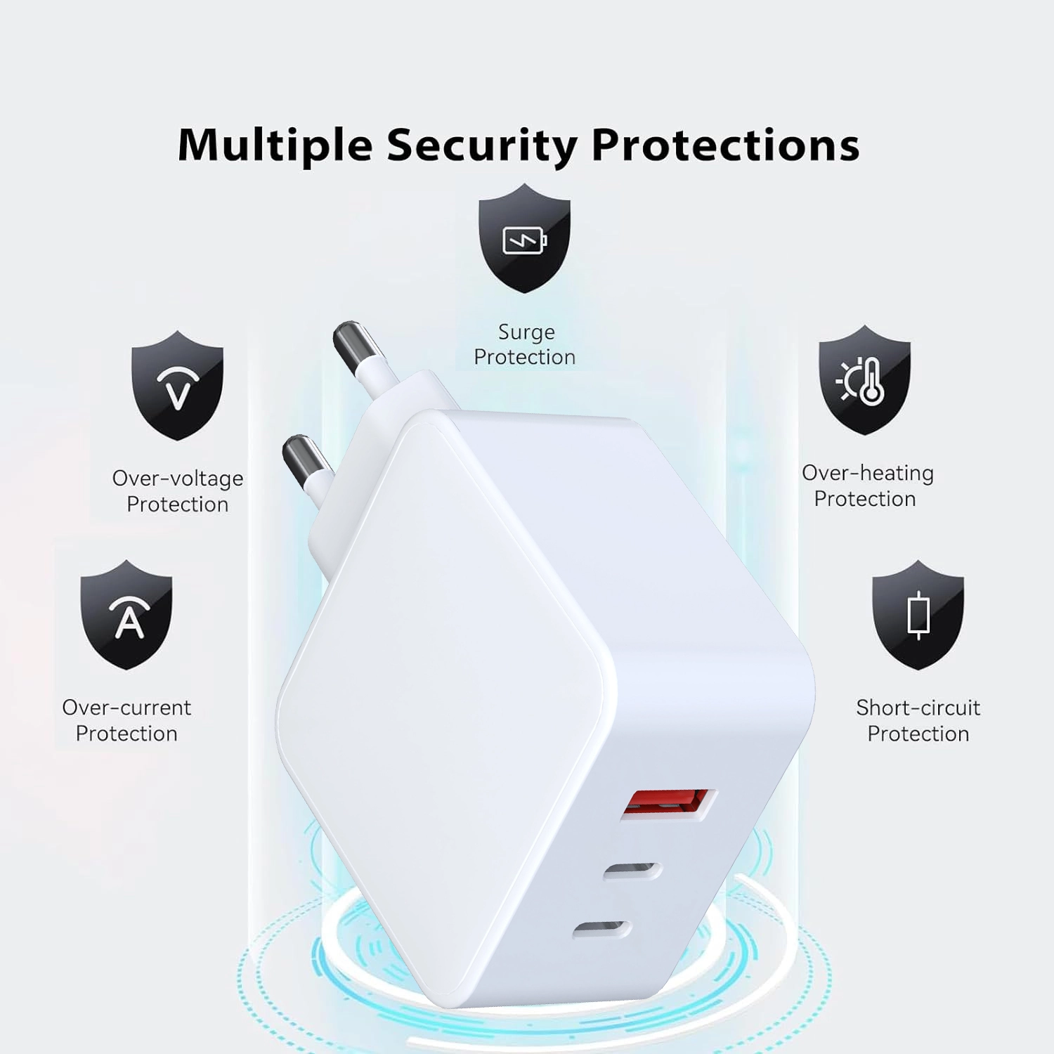 Avanceret sikkerhedsbeskyttelse Indbygget overspændings-, overstrøms-, overophednings- og kortslutningsbeskyttelse sikrer sikker og pålidelig opladning af alle dine enheder.