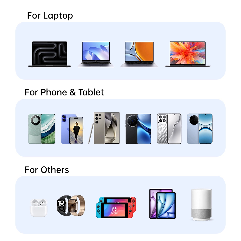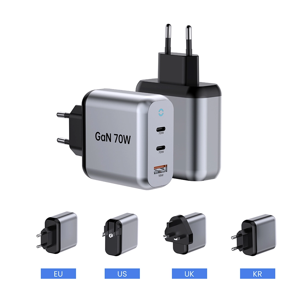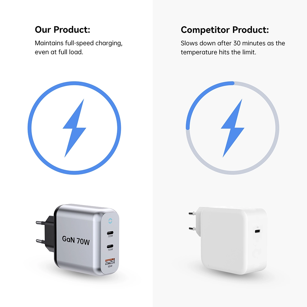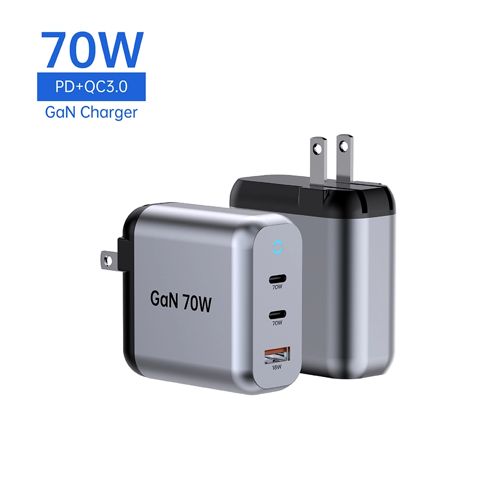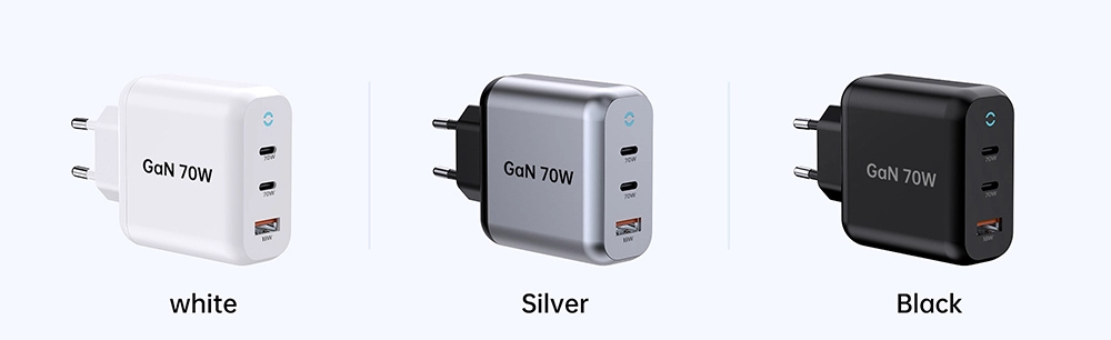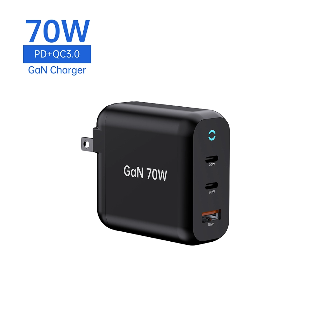 Starwell holdbar 70W PD-hurtigoplader til latpop-tablet også kaldet 70W GaN Fast Charger: 2C1A, der opfylder det daglige behov for hurtigopladning af mobiltelefoner og tablet-enheder. Lille i størrelse, stærk i ydeevne, med avanceret galliumnitridteknologi. Når den bruges i en enkelt port, er den maksimale udgangseffekt for USB-C1-grænsefladen 70W. Når de to porte bruges sammen, opretholder USB-C1 stadig 45W PD hurtigopladning. Understøtter flere hurtigopladningsprotokoller, herunder PD3.0, PPS, QC4+ og QC3.0, hvilket sikrer bred kompatibilitet med forskellige enheder