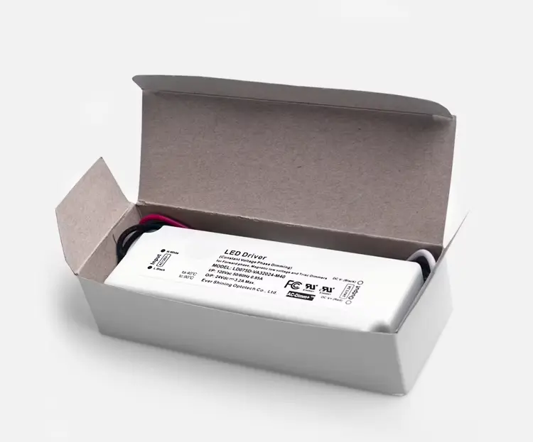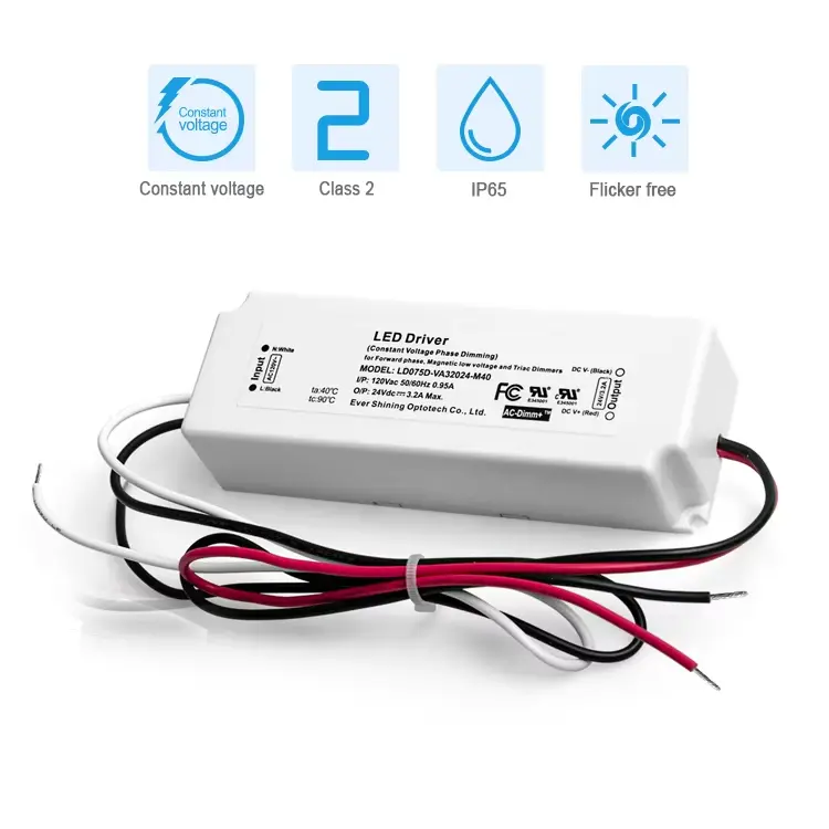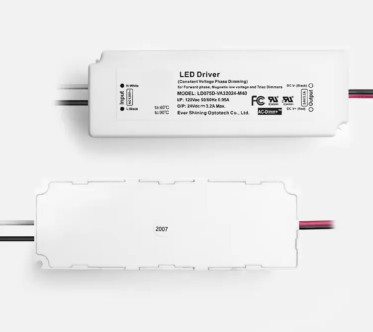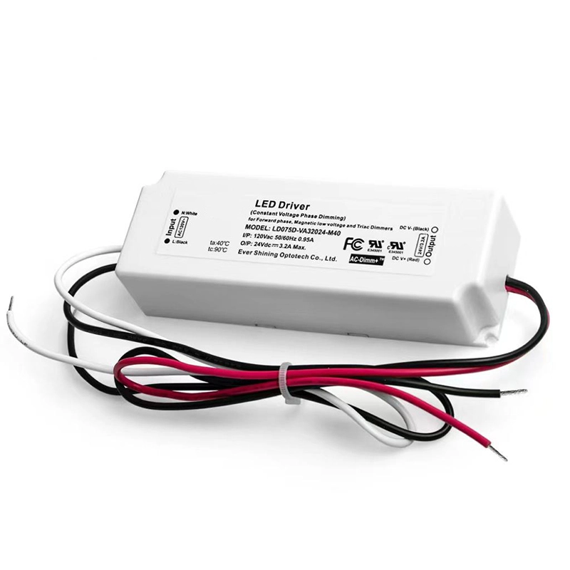 75W konstant spænding LED-driver med TRIAC-dæmpning • Kompatibilitet: Fungerer med de fleste standard TRIAC/glødelamper. • Stabil udgang: Konstant spænding (CV) for 12V eller 24V LED-systemer. • Glad kontrol: Muliggør dæmpning i fuld rækkevidde, flimmerfri. • Robust beskyttelse: Indbyggede sikkerhedsforanstaltninger mod elektriske fejl. • Typisk brug: Perfekt til dæmpbare LED-strips, moduler og skinnelys.