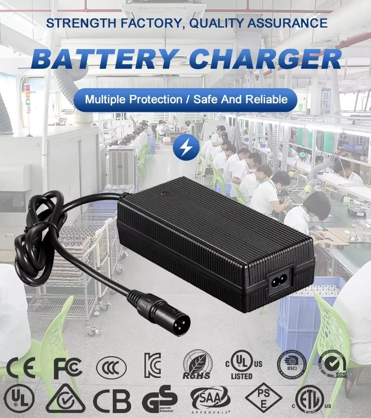 Global kompatibilitet og robust sikkerhed: Med en universel 100–240VAC-indgang fungerer den problemfrit over hele verden. Avanceret tre-trins smart opladning (CC/CV) optimerer batteriets sundhed, mens omfattende beskyttelse – inklusive kortslutning, overspænding, overtemperatur og overbelastning – sikrer sikker, bekymringsfri drift. Det holdbare hus er konstrueret med brandsikre materialer for øget pålidelighed i krævende miljøer.