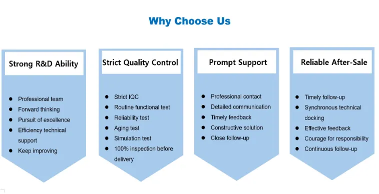 Vores produkter refererer strengt til internationale standarder og høje industristandarder fra design til korrektur til masseproduktion og overholder internationale standarder som CE, FCC, RoHS, ETL osv. for at sikre kompatibilitet og overensstemmelse på det globale marked.