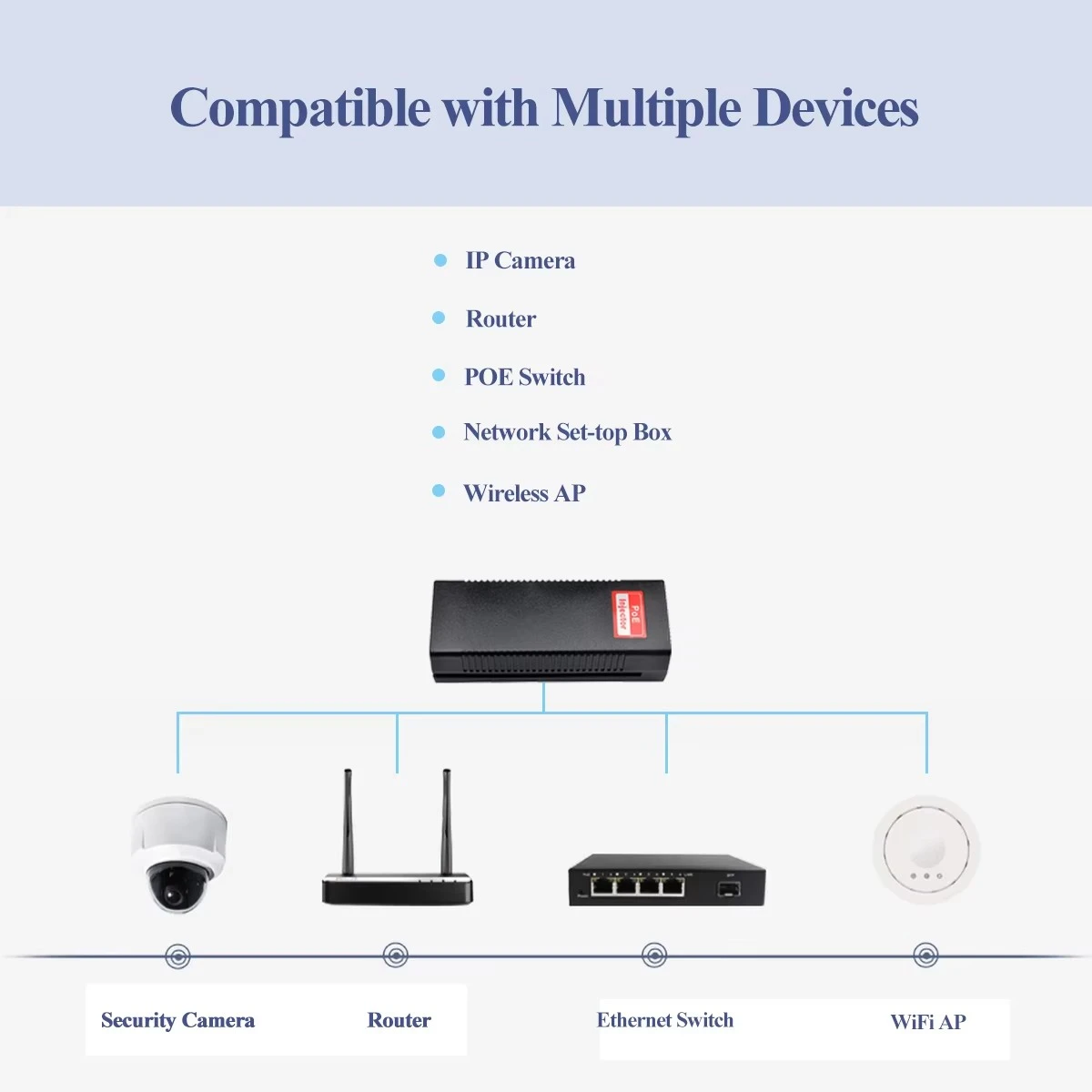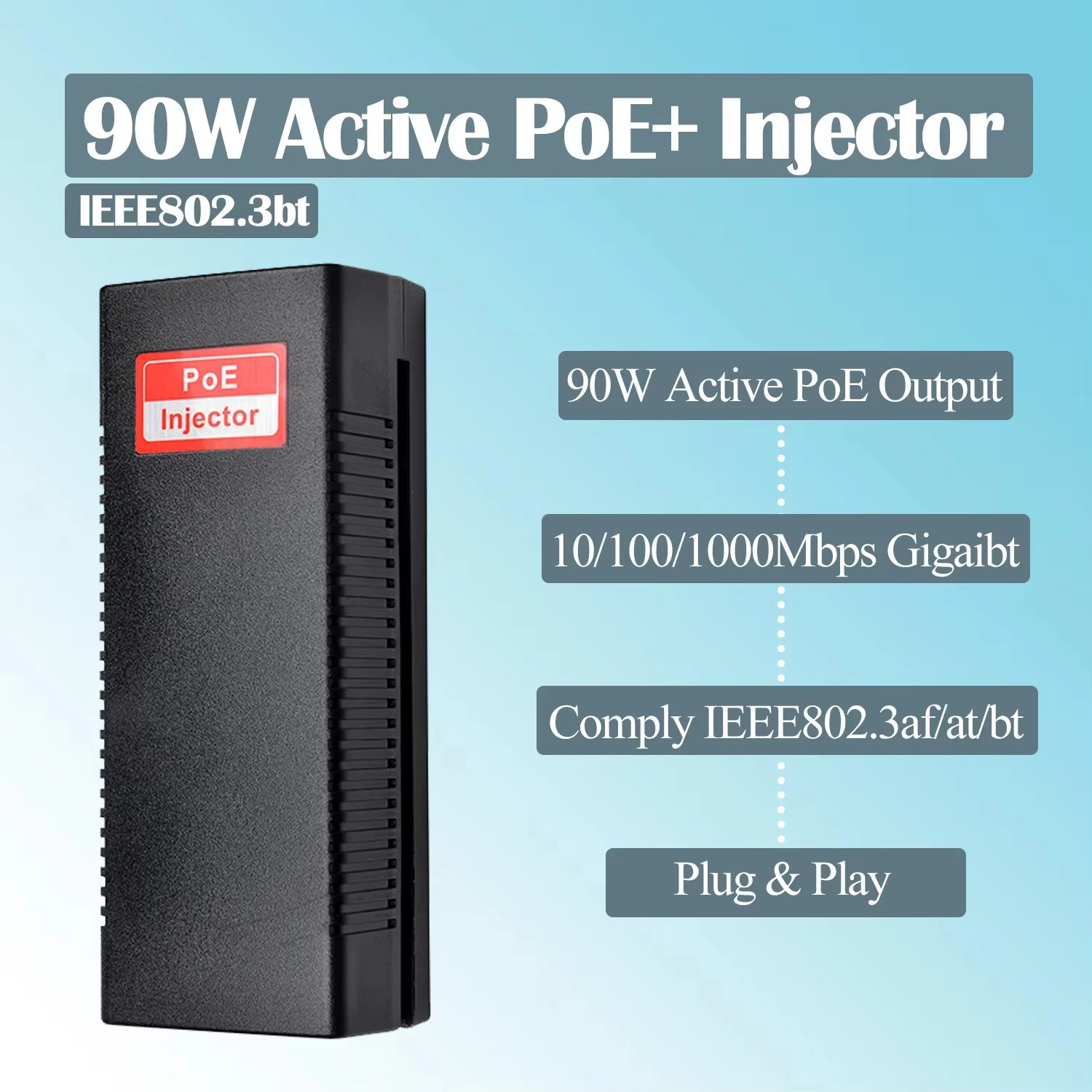 STARWELL OEM PoE Injector Gigabit 48V 90W PoE Injector til IP-kameraer er en højtydende Gigabit Power over Ethernet (PoE)-løsning designet til små til mellemstore netværksmiljøer. Den byder på: