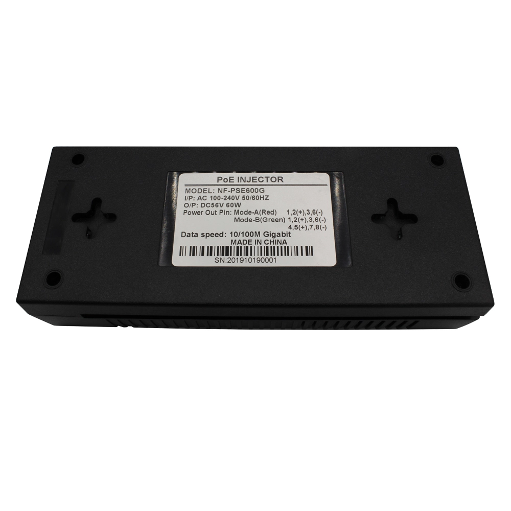 Udstyret med 10/100/1000 Mbps Gigabit RJ45-porte og indbyggede Gigabit Ethernet-chips, muliggør den ægte Gigabit-transmission og transmitterer både data og strøm samtidigt over et enkelt Cat5e/Cat6-kabel op til 100 meter uden signaltab eller strømdæmpning.
