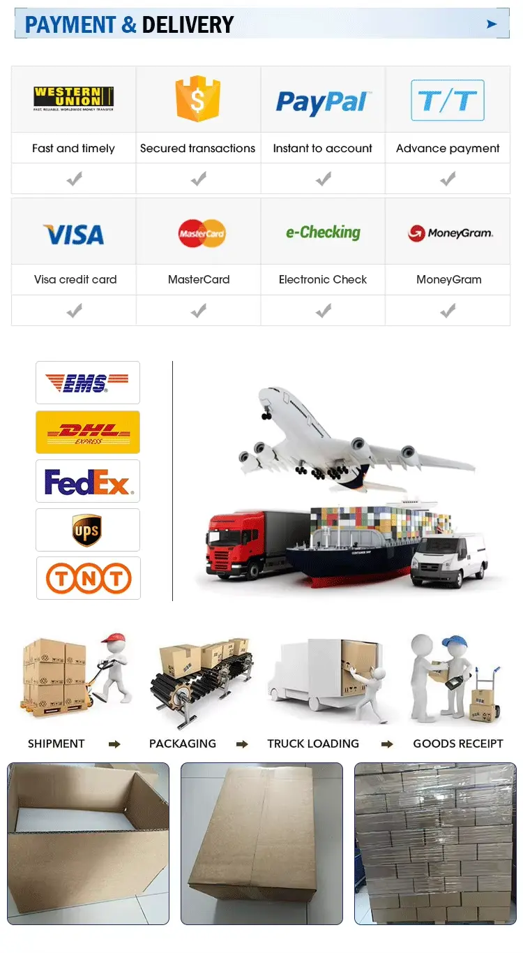 A4: Små ordrer sendes med ekspres (FEDEX, DHL, EMS, TNT). Store ordrer sendes til søs eller i luften. FOB pris tilgængelig. Du kan bruge din speditør eller vores.