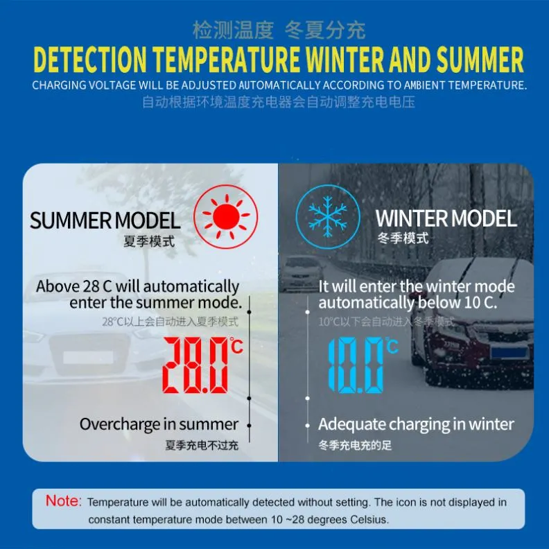 · Automatisk vedligeholdelsestilstand: Fungerer som en vedligeholdelsesoplader og langtidsvedligeholdelse af batteri, ideel til sæsonbestemte eller sjældent brugte køretøjer.