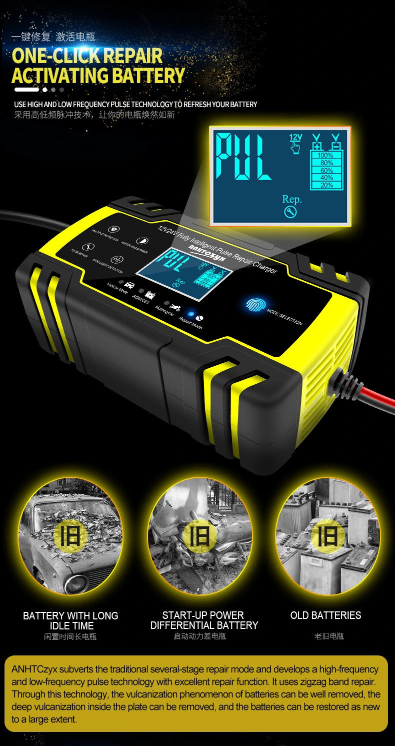 · Pulsreparationsfunktion: Bruger højfrekvent pulsteknologi til at reducere blysulfatkrystallisering (sulfatering), og hjælper med at genoprette tabt kapacitet i gamle eller underopladede batterier.