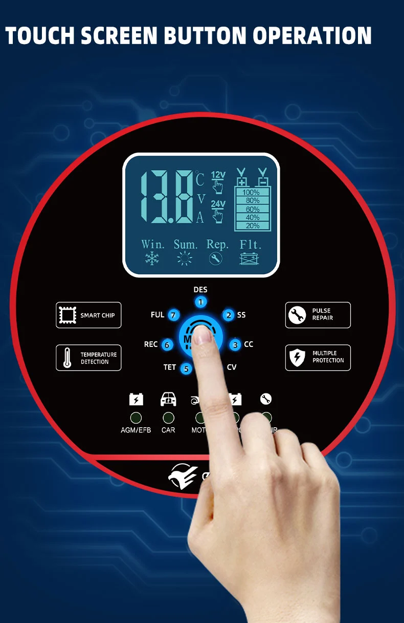 TK-1500 LCD display bil motorcykel lastbil automatisk batterioplader 12V20A 24V10A blysyre lifepo4 batterioplader |