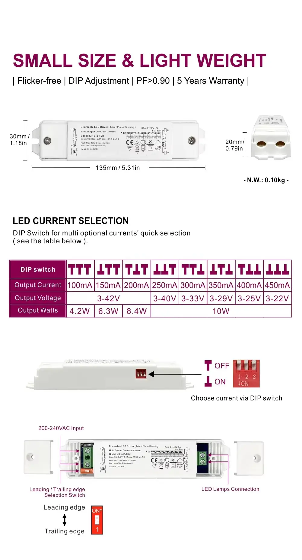 Robust kraft og høj effektivitet: Med høj effektfaktorkorrektion (PF>0,9) og lav total harmonisk forvrængning (THD) opfylder vores driver globale energieffektivitetskrav, reducerer belastningen på dit elektriske system og fungerer med cool, pålidelig ydeevne.