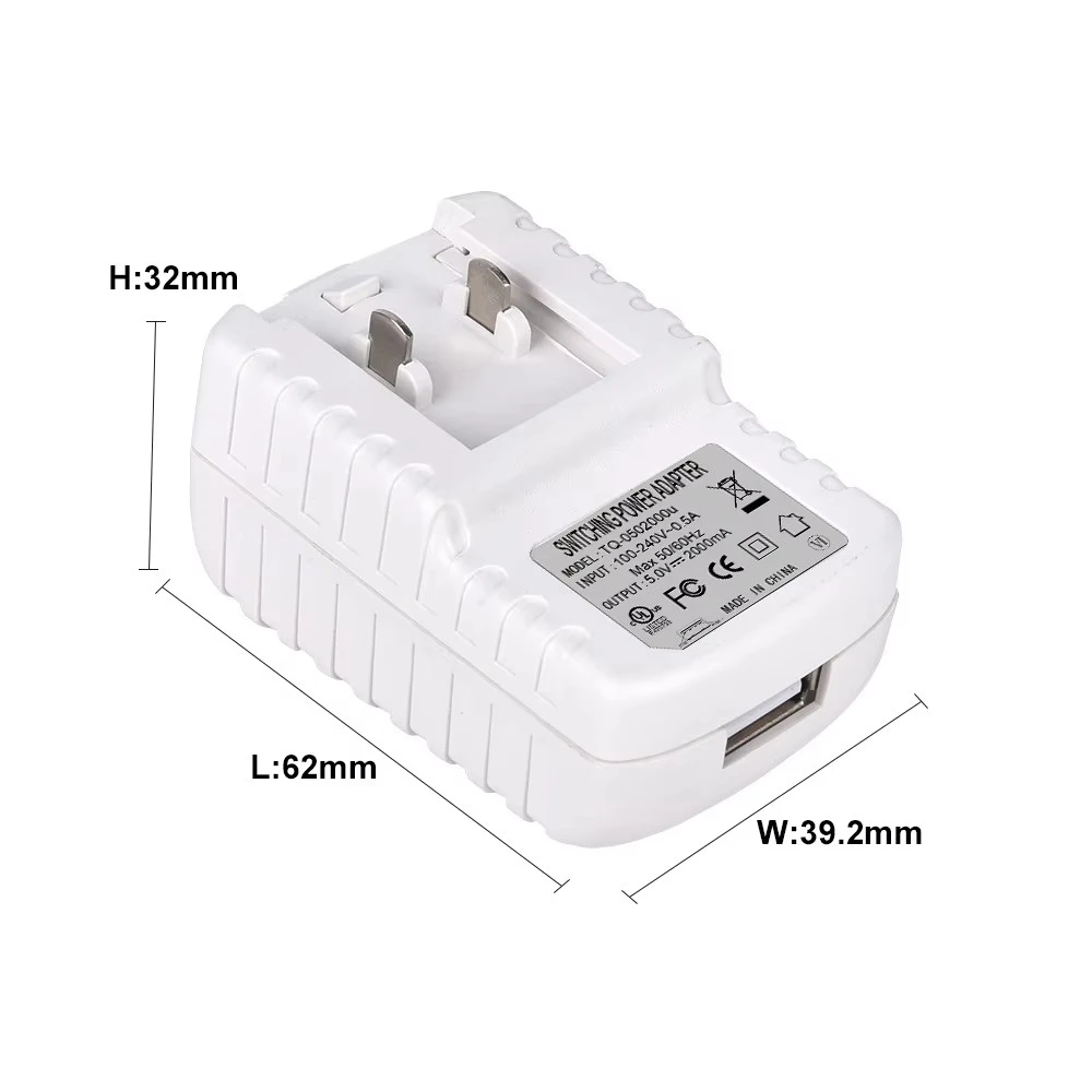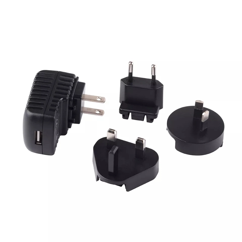 5V 2A universal USB A port oplader strømadapter med udskifteligt AC stik |